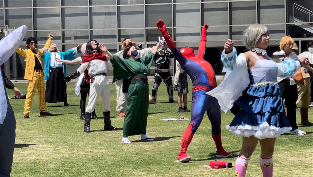 集まったコスプレイヤーのみなさまのラジオ体操・・・・